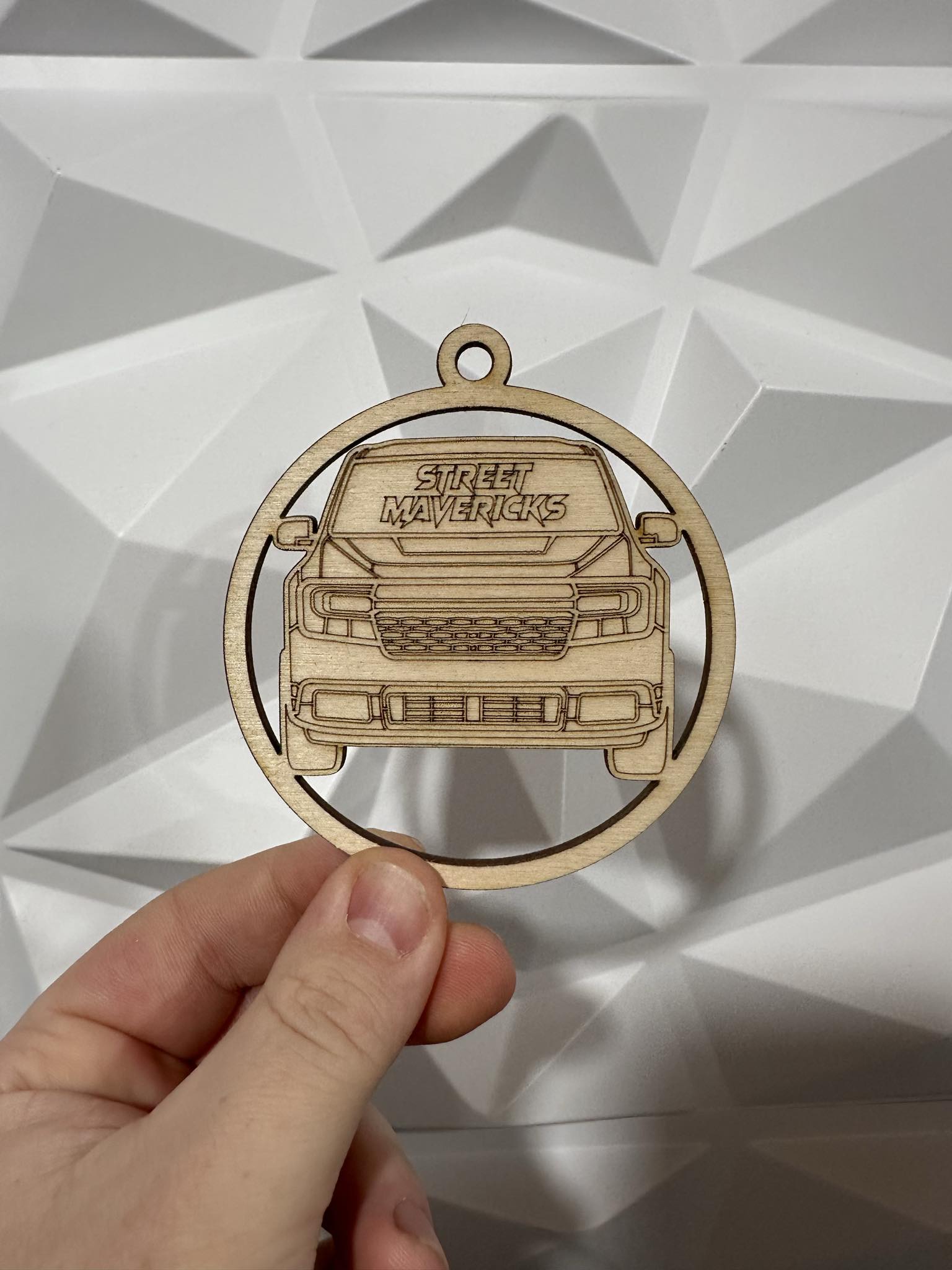 Laser cut from wood.